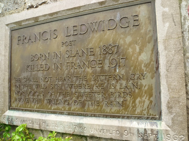 Ledwidge was born in Slane in 1888 and after joining the Volunteers in 1913 enlisted in the British Army the following year in the Royal Inniskilling Fusiliers. He was killed at the battle of Ypres (Ieper) in Flanders in July 1917.