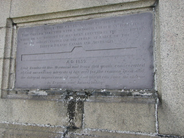 Adam Clarke Obelisk Plaque © Copyright Willie Duffin and licensed for reuse under Creative Commons Licence