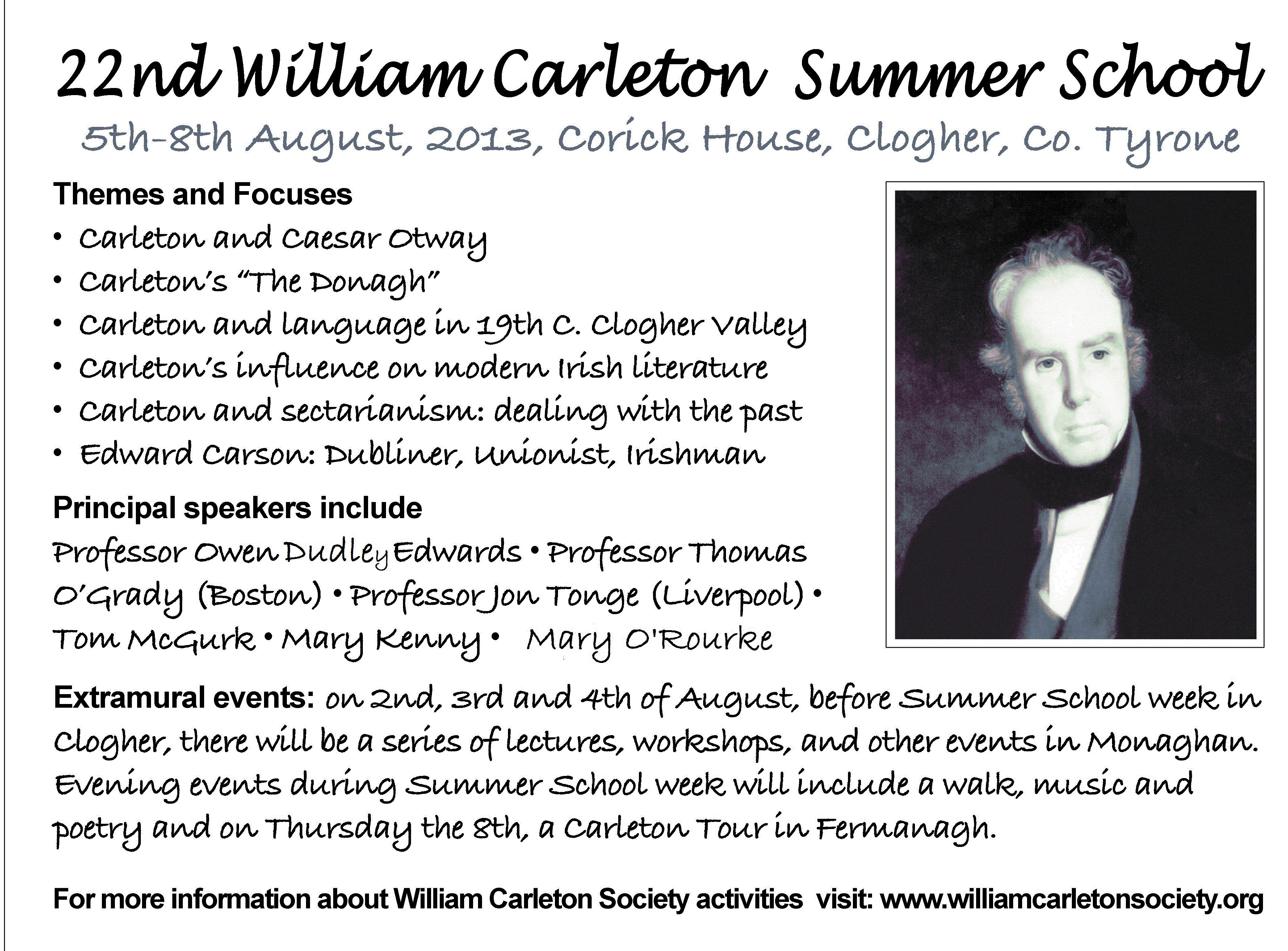 The William Carleton story was told by Jack Johnston at The Shepherd’s Rest pub near Draperstown. The well-attended event was hosted by Ballinascreen Historical Society. It include a reading by the Carleton Players from “The Party Fight and Funeral”, adapted by Liam Foley. William Carleton Society is part of the “Shared History, Shared Future” project financed by the EU Peace III initiative and administered by Magherafelt District Council on behalf of the South West Peace III Partnership. On Tuesday 14th May at 6:30pm at Ranfurly House/Hill of the O’Neill centre in Dungannon we will be launching the programme for the 22nd annual William Carleton international summer school. All welcome.