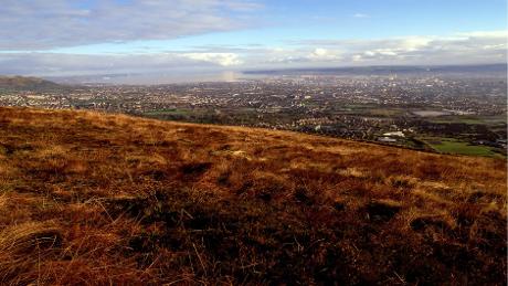 On a clear day Divis Mountain allows views of Belfast and Belfast Lough, south-west Scotland, the Isle of Man, Antrim Hills, the Mournes, Lough Neagh, Strangford Lough, the Sperrins, Donegal and mid-Ulster. My neighbour, an experienced hillwalker, has often told me about this beauty to be found on our doorstep. From our houses we can see the other side of Divis and White Mountain. I must now take the opportunity to explore further this scenic part of Belfast.