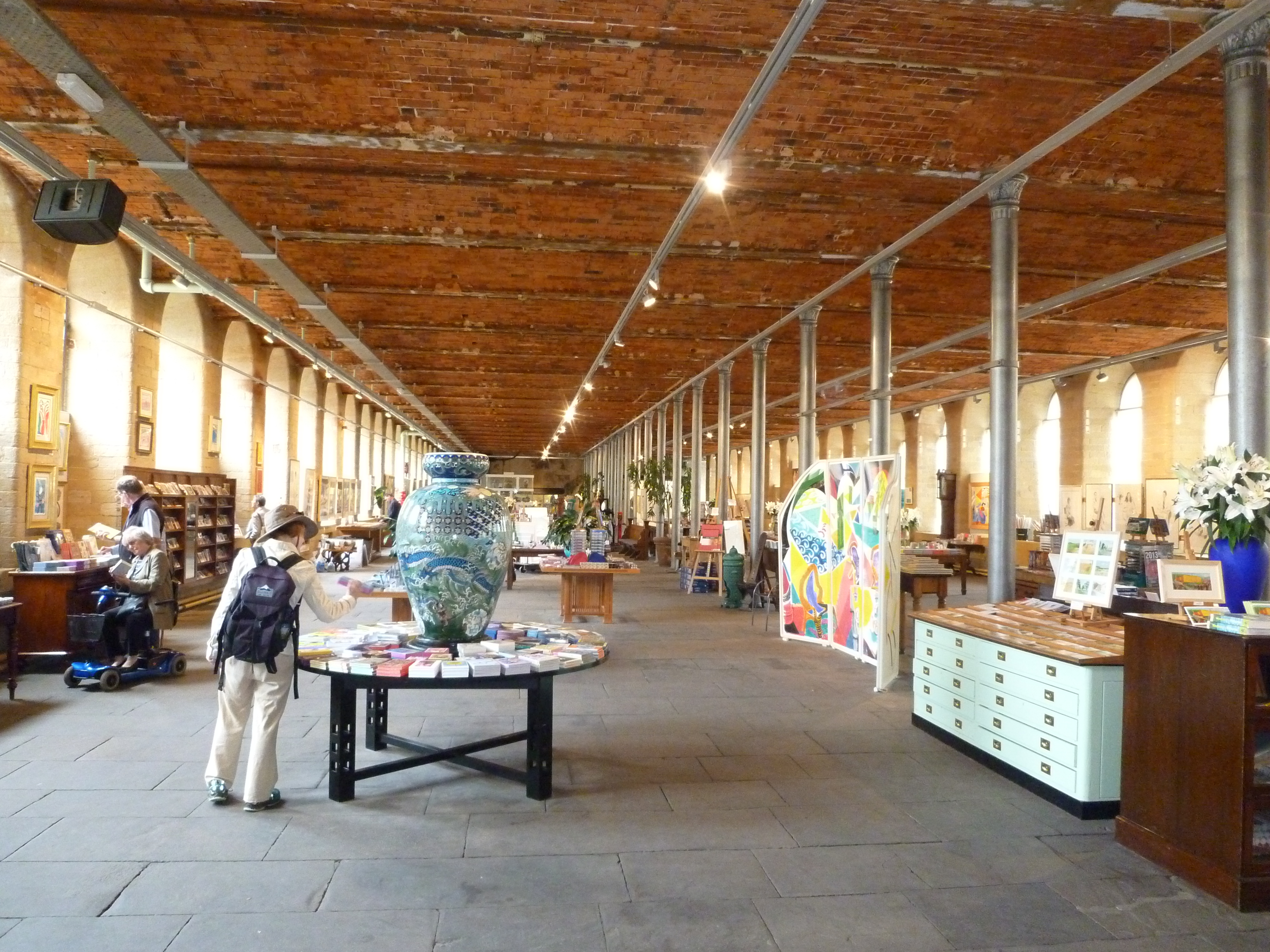 I saw from the map that Saltaire was nearby and when I got my bearings I soon saw the large former mill buildings not too far distant, on the other side of a railway line. This was a gem in industrial architecture. The township built by Sir Titus Salt alongside the River Aire is now a UNESCO world heritage site. Part of the Salt’s Mill complex contains retail outlets and another section of it is devoted to commercial use. There are some nice restaurants inside. I thought Belfast’s old mills were big but Salt’s building has a frontage that is 545 ft long, with six storeys rising 72 ft. At one stage in the 1800s some 4000 people worked here. The weaving shed of the mill housed 1200 looms, producing 30,000 yards of alpaca and other cloths daily.