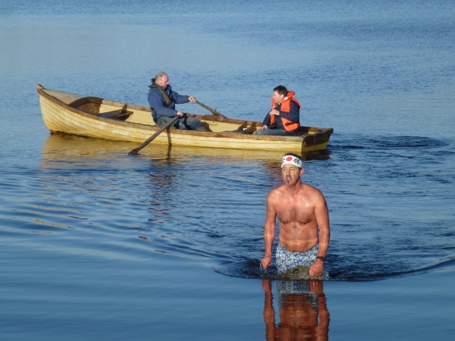 Mark Leslie was also there, easy to spot with a Japanese bandana. He was one of two hardy swimmers who swam out as far as a small island in the lake and returned safely to shore, with two volunteers on standby in a rowing boat in case anyone got into difficulty.