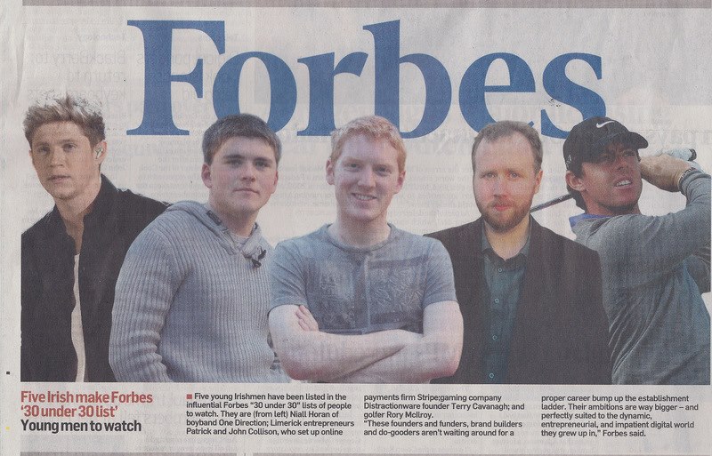 Congratulations to Tydavnet’s Terry Cavanagh whose entrepreneurial skills have been recognised by the prestigious Forbes magazine. The County Monaghan native, now based in London, is one of five Irishmen (another being the golfer Rory McElroy from Holywood, County Down) who have been included in their annual ’30 under 30′ worldwide list. There is a montage picture of these ‘young men to watch’ in today’s Irish Times and it looks like Rory’s golf club is hitting Terry on his back somewhere around the shoulder! By coincidence Terry’s parents and aunt were with me in Holywood walking along a short section of the North Down coastal path on New Year’s Day. Terry was included because of his expertise as a video games developer (products such as Super Hexagon and VVVVV). The company he founded is Distractionware. He was home in Tydavnet for Christmas and the New Year.