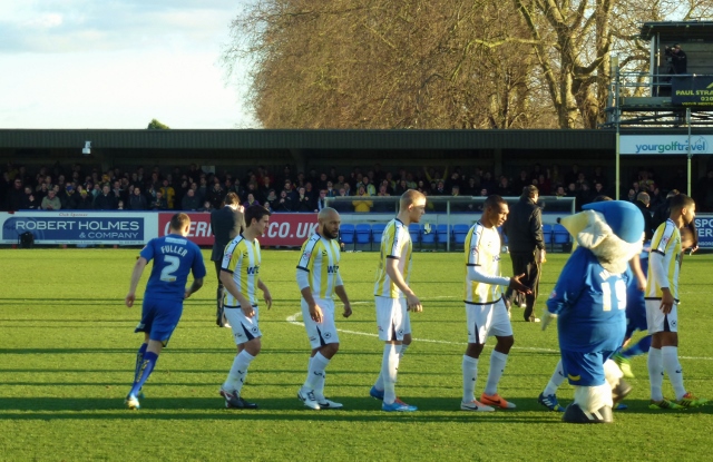 This was my first visit of the 2013/14 League 2 season to Kingsmeadow. The day was sunny but cold and the pitch seemed in good condition as the two teams came out from the dressing rooms.