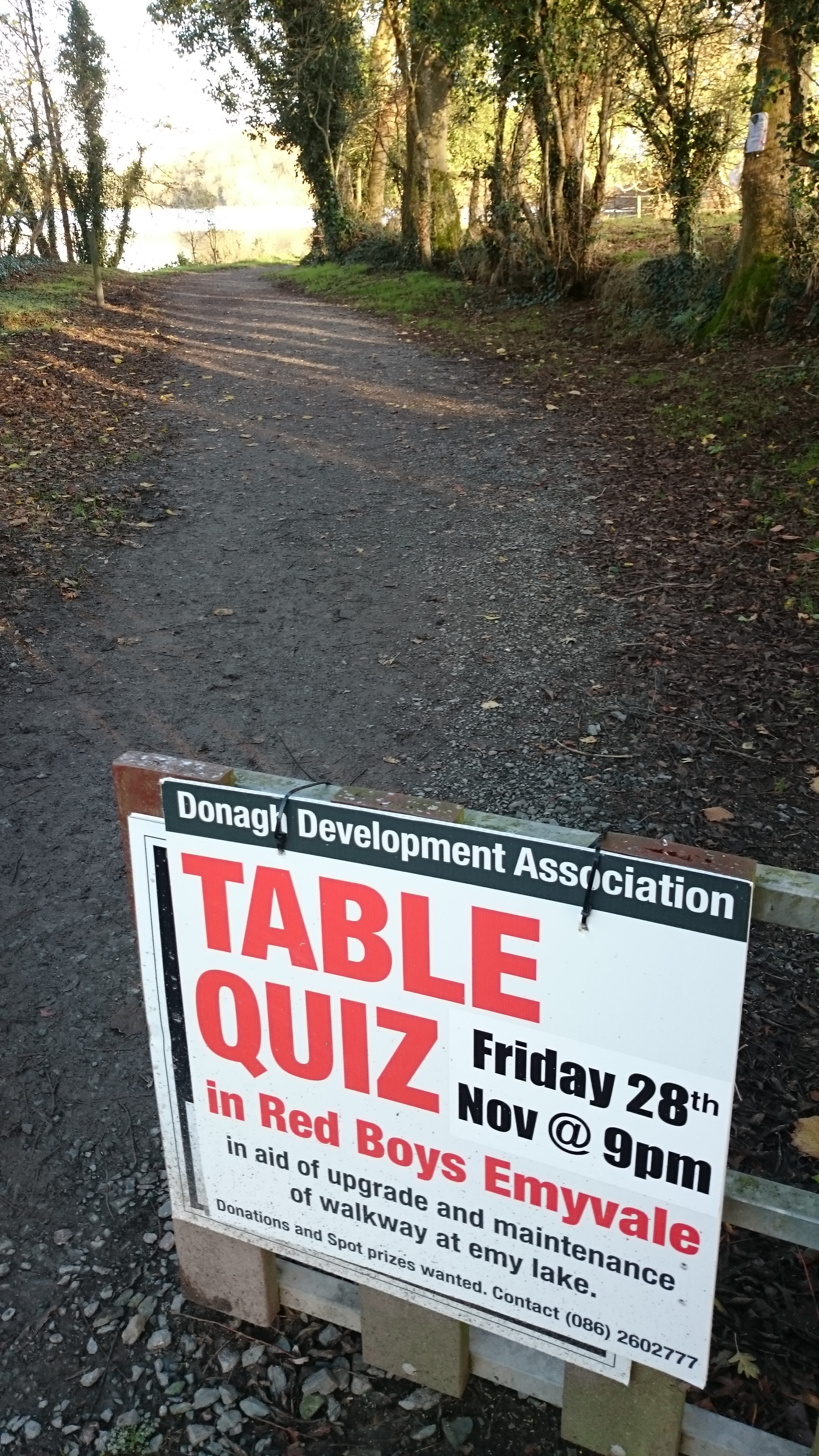 Tonight (Friday 28th November) a Table Quiz will be held at the Red Boys pub, Main Street, Emyvale in order to raise funds for the maintenance and upgrading of the walkway. Prizes to be won and a good night’s entertainment. More details can be found at emyvale.net.