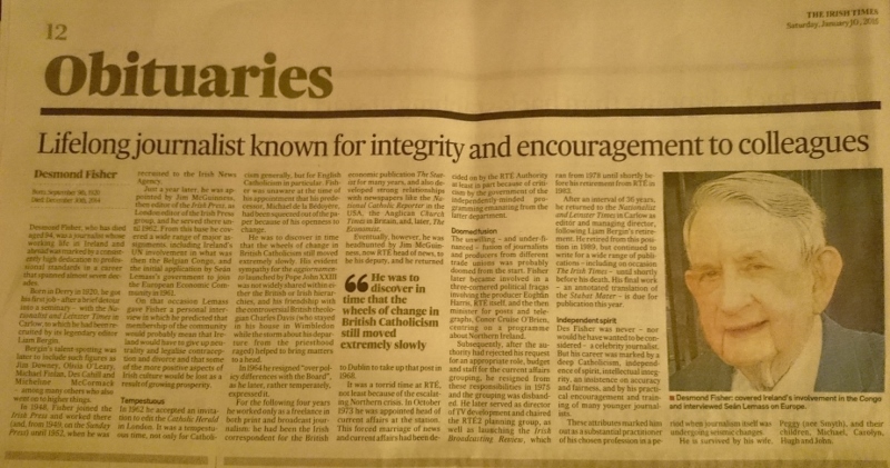 Irish Times Obituary Saturday 10th January 2015 p.12