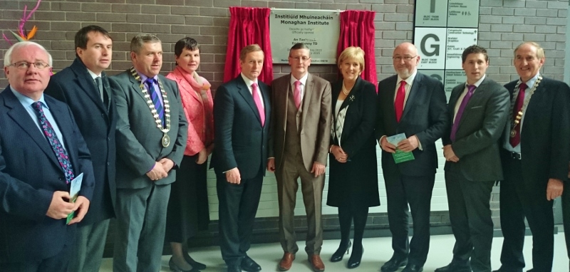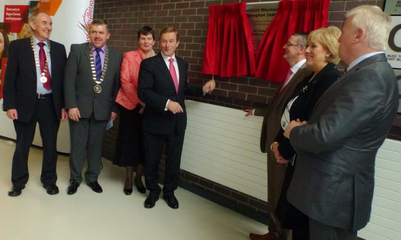 Opening of Monaghan Institute: Taoiseach Enda Kenny TD unveils plaque in the main entrance hall.