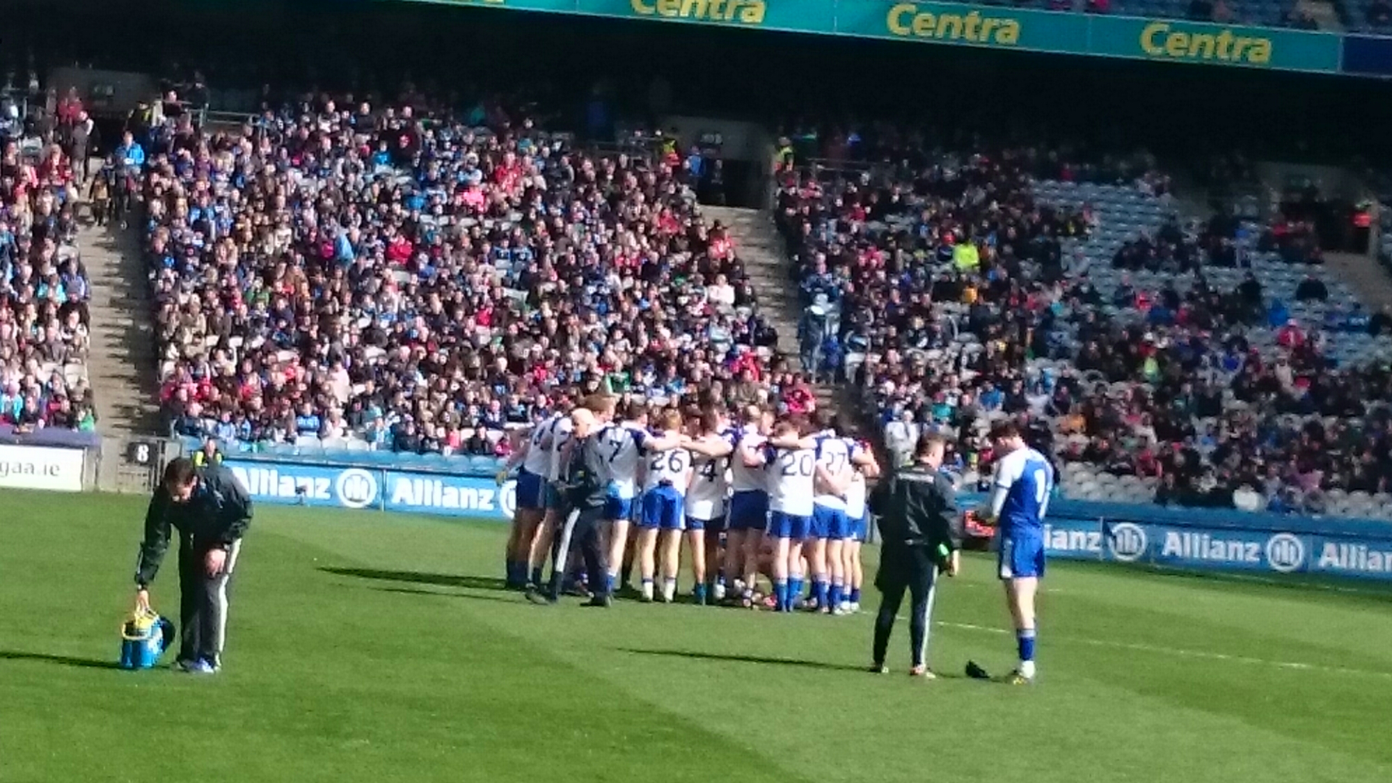 A close call for the Dubs as valiant Monaghan go down by a single point in the National League semi-final at Croke Park 0-17 to 0-16. After last week’s drubbing by the Dubs at Clones, there weren’t too many supporters in the crowd of 20,000 expecting a Monaghan win. But as one friend from Emyvale said to me before the game, a defeat of around four points would be a good result for the Farneymen. In the end Monaghan almost managed a draw and a chance of taking victory in extra time. The Dubs however moved the ball quickly and precisely, launching wave upon wave of attacks on the Monaghan defence. But Monaghan kept with them all the way, up until the sixtieth minute when the sides were level on fourteen points each.