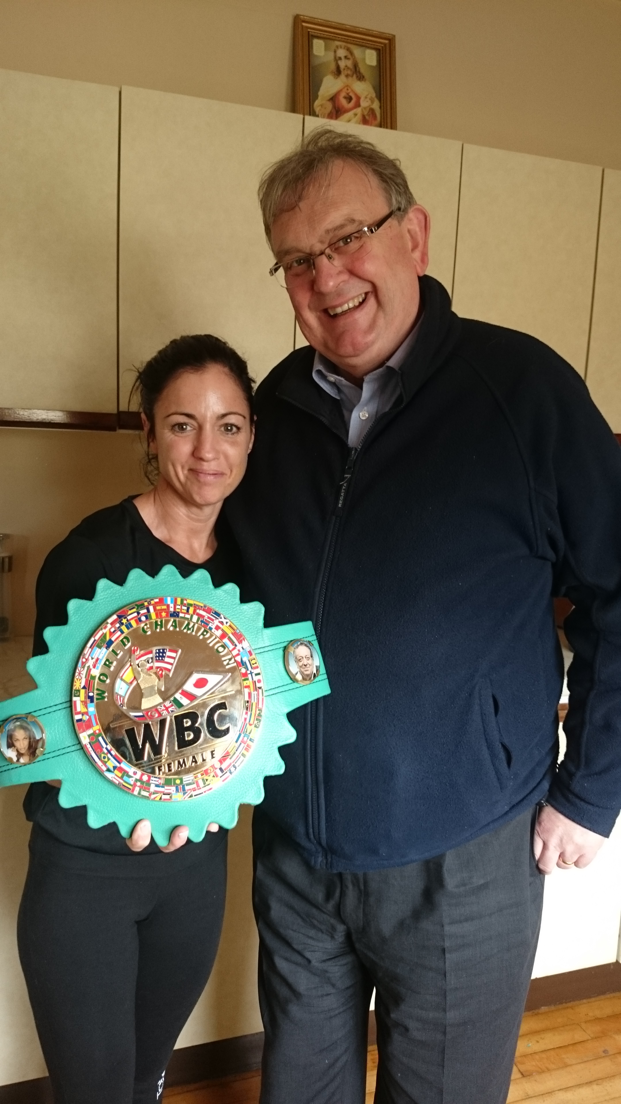 “You are absolutely inspirational”, the Saturday Night Show host Brendan O’Connor told Christina McMahon from Carrickmacross as she finished her live interview on RTE1 in front of a studio audience at Donnybrook that included her coach and husband Frick and her parents. Christina is now resting after her tough ten rounds fight in Zambia to win the interim WBC bantamweight world title. The belt, the only one of its kind in Ireland at the moment, was with her as she explained to her interviewer how she had taken up boxing on a professional basis when she turned 35, having won a world title for kick-boxing. Now aged 40, she had been up against a much younger opponent in Lusaka, 22 year-old Catherine Phiri, who was strongly fancied to win by the home crowd.