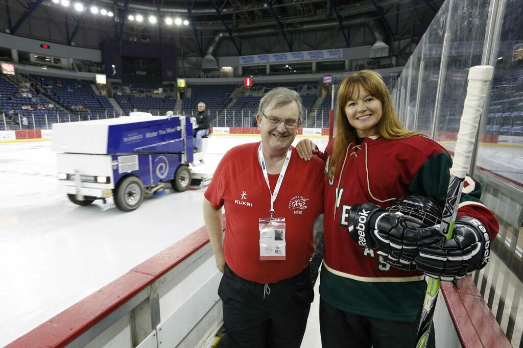 WPFG Volunteer Michael Fisher with Kim Harper, Las Vegas Guns & Hoses at the Odyssey Arena July 2013 Picture: © Kelvin Boyes, Press Eye