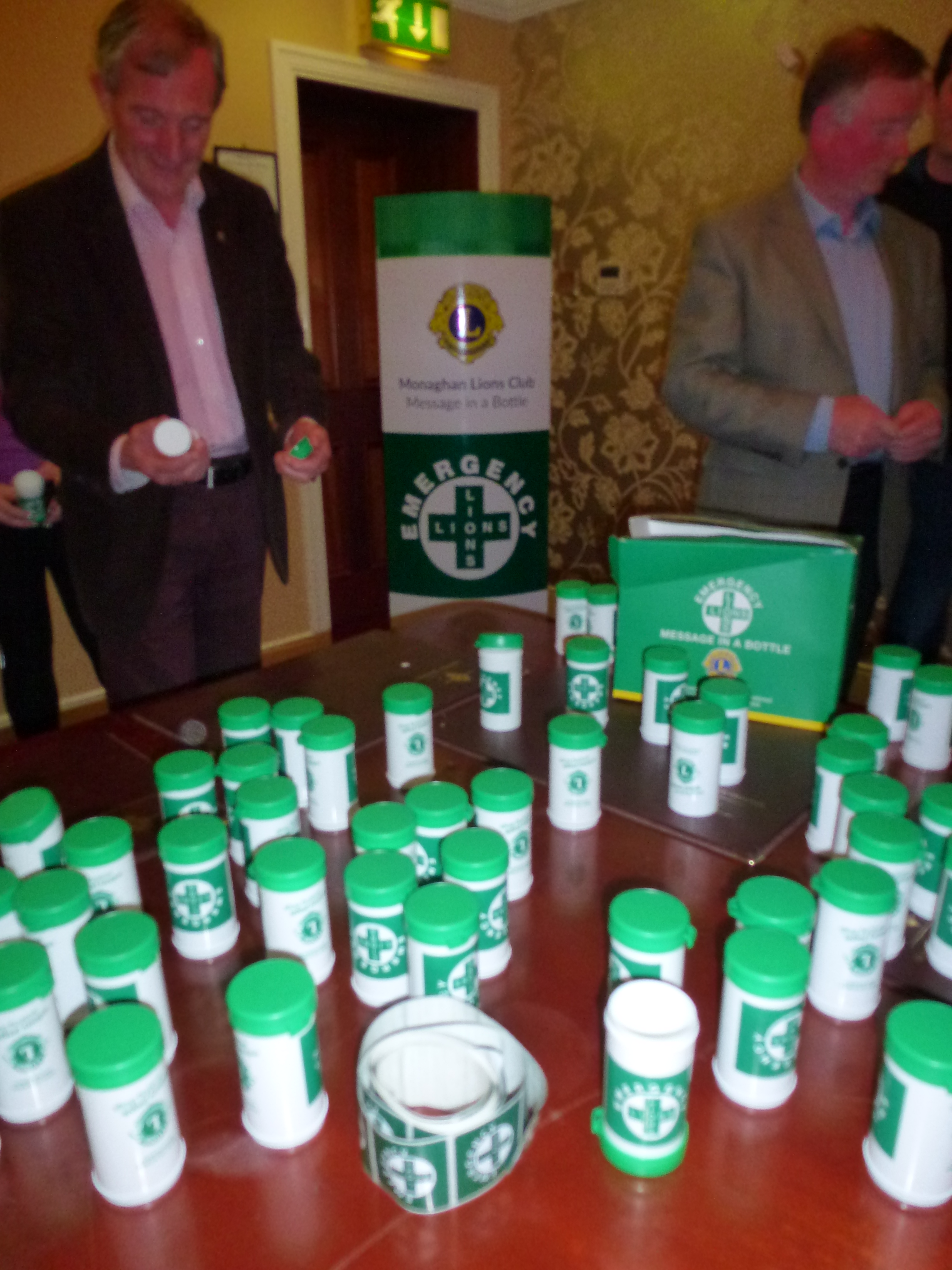 A new initiative designed to help emergency services access important medical and personal information quickly when they arrive at the scene of a medical crisis has been unveiled by Blayney Blades at the Íontas Centre, Castleblayney. The Message in a Bottle scheme was launched as part of social inclusion week. Monaghan Lions Club are providing the bottles free of charge. Michael Fisher of Monaghan Lions Club officiated at the launch.