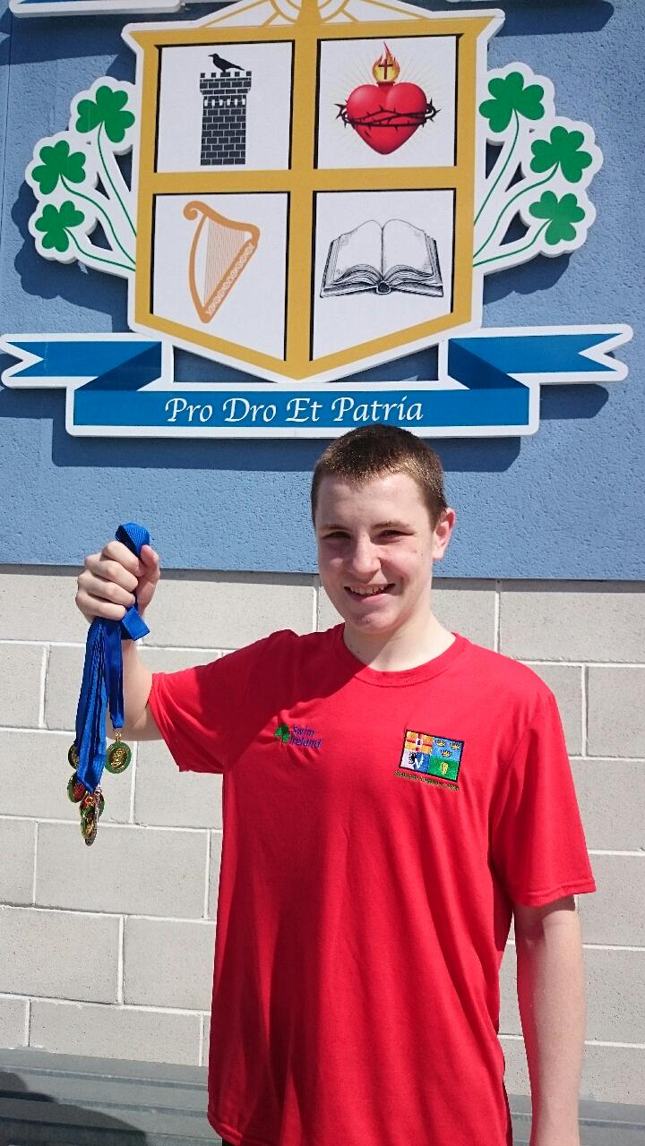 Cathal swam in six events over three days, with heats in the morning and finals in the afternoon. He came home to Inniskeen this time with six gold medals claiming the top award in the 100m, 200m and 400m freestyle, 100m, 200m breaststroke and 200m IM.