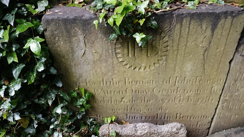 The Moores lived at 12 Aungier Street, where they ran a grocery business. Thomas, the eldest of the Moore children, attended Trinity College with Robert Emmett. He was renowned for his poetry and music and was lauded by Byron, Scott and Wordsworth. Thomas Moore had the headstone here erected for his parents and sisters.