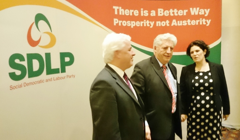 SDLP leader Dr Alasdair McDonnell MP congratulates Cllr Claire Hanna and Feaghal McKinney MLA at the Assembly selection meeting in South Belfast Photo: © Michael Fisher