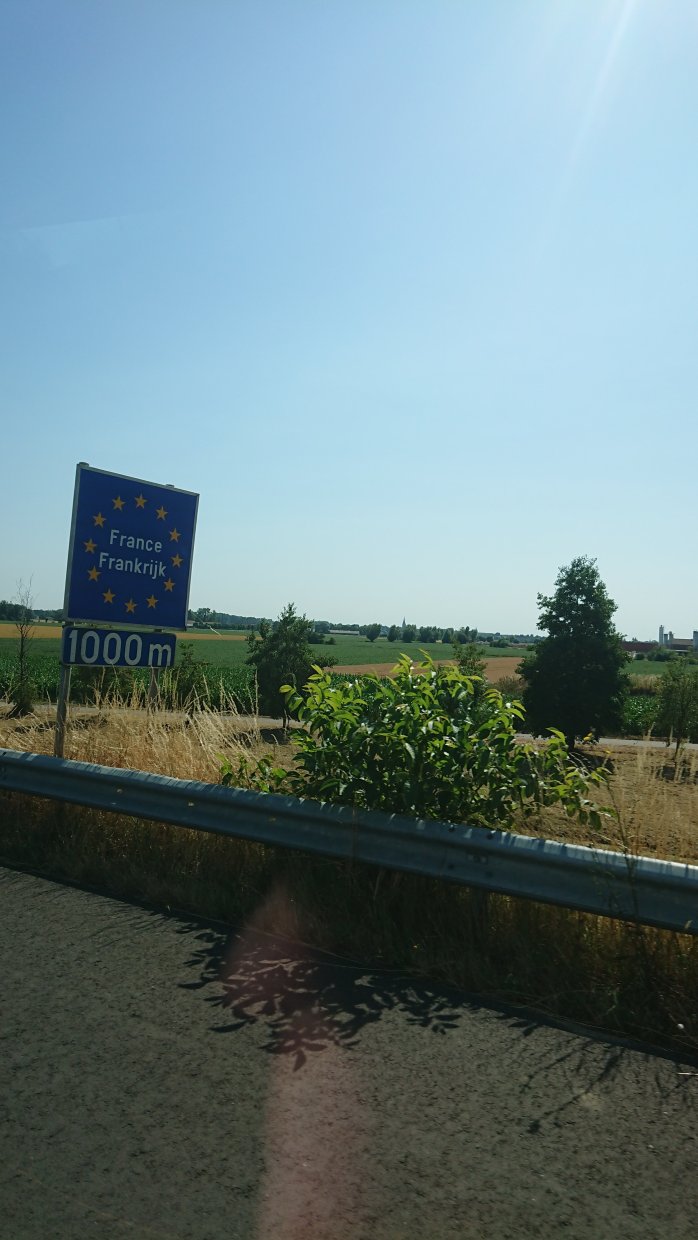 The seamless border between Belgium and France both in the Schengen Agreement