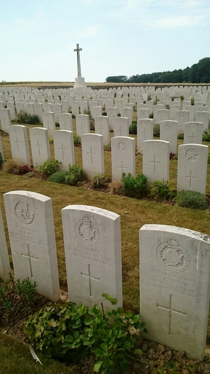 This CWGC cemetery is just outside the village of Guillemont, which has a special significance for the 16th Irish Division and the Battle of the Somme in July 1916. It is 12km east of Albert. The first grave we searched for was that of Private John Hayden of the 6th Battalion, Connaught Rangers. He died on September 3rd 1916.