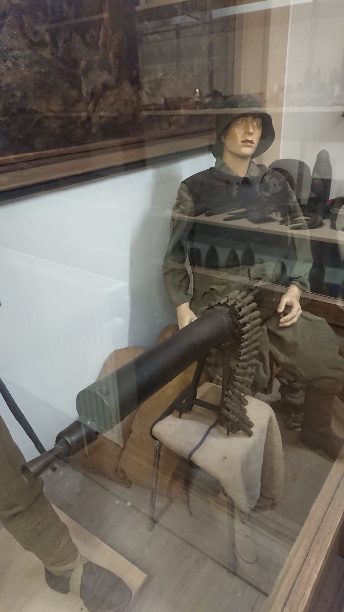 In what was once a house, several rooms are dedicated to various displays of wartime memorabilia. They include some fascinating posters and pictures, including several showing the devastation of Ieper (Ypres) by the Germans during World War One.