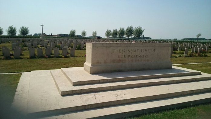 Among the graves is that of Lance Corporal Charles H. Smith, South Staffordshire Regiment. He died on 16th August 1917, aged 29, and came from Altrincham near Manchester.