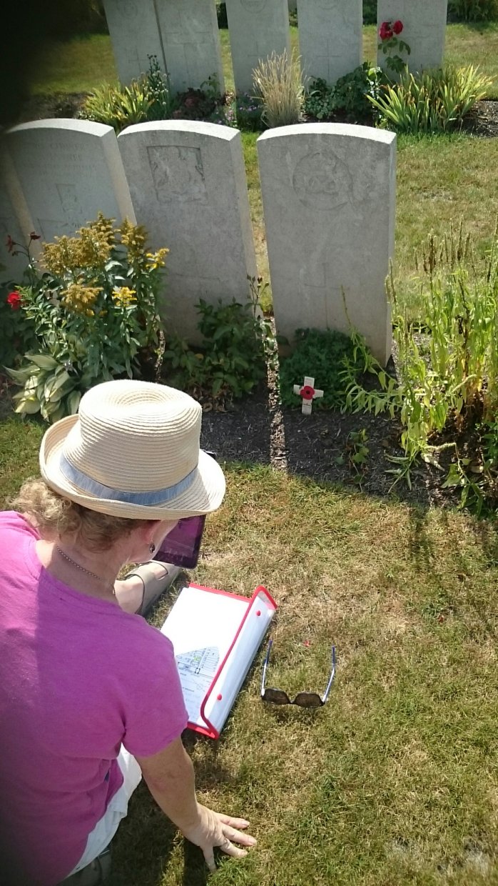 Margaret Nolan, Co. Kilkenny, searching for the graves at Bard Cottage Cemetery