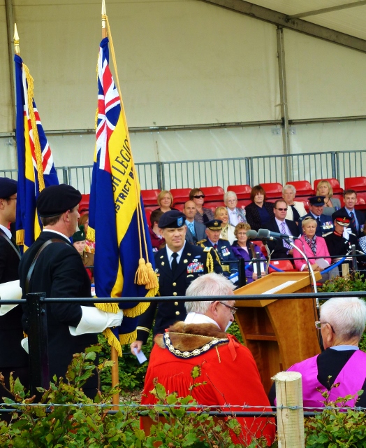 The ceremony was organised by Castlereagh Borough Council, which also reinstated the entrance to the former US military cemetery and provided the monument. It began with a formal parade from Lagan College, headed by the Mayor Councillor David Drysdale, who was driven in a former US Army jeep of the type used in World War II. The pipes and drums of 152 (Ulster) Transport Regiment, Royal Logistics Corps, followed with the other members of the Council, the Air Training Corps Cadets and members of local branches of the Royal British Legion.