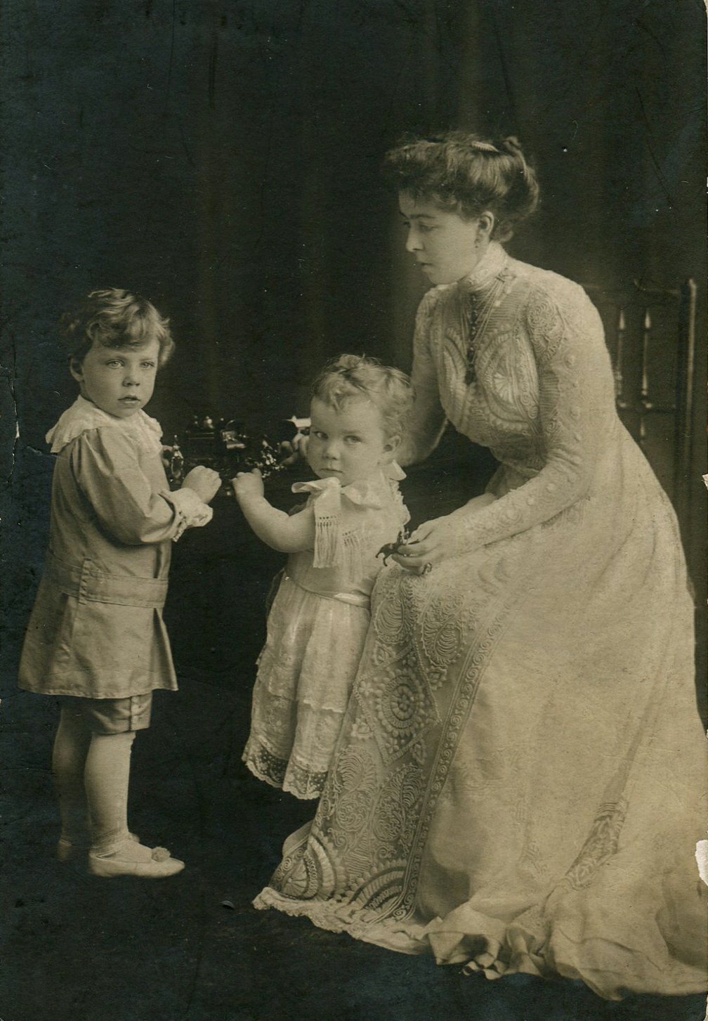 Margaret”. The picture shows her with her two children, Gustaf Adolf aged 3, and Sigvard, aged 2.