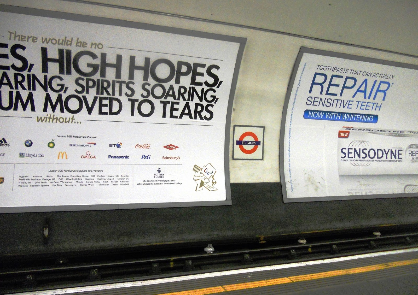 Advertising hoardings at Saint Paul’s Underground station (Photograph: Patrick Comerford)