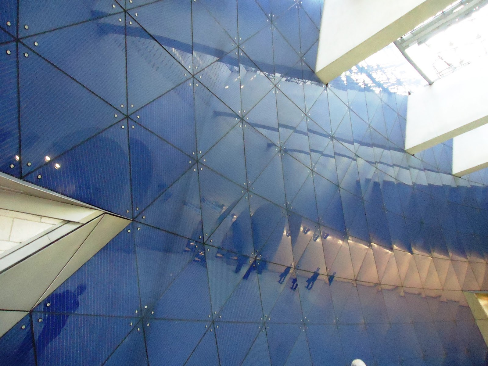 Southwark Station’s blue cone wall, built as part of the Jubilee line extension’s new generation of stations, was inspired by an 1816 stage set for Mozart’s ‘The Magic Flute’ (Photograph: Patrick Comerford)
