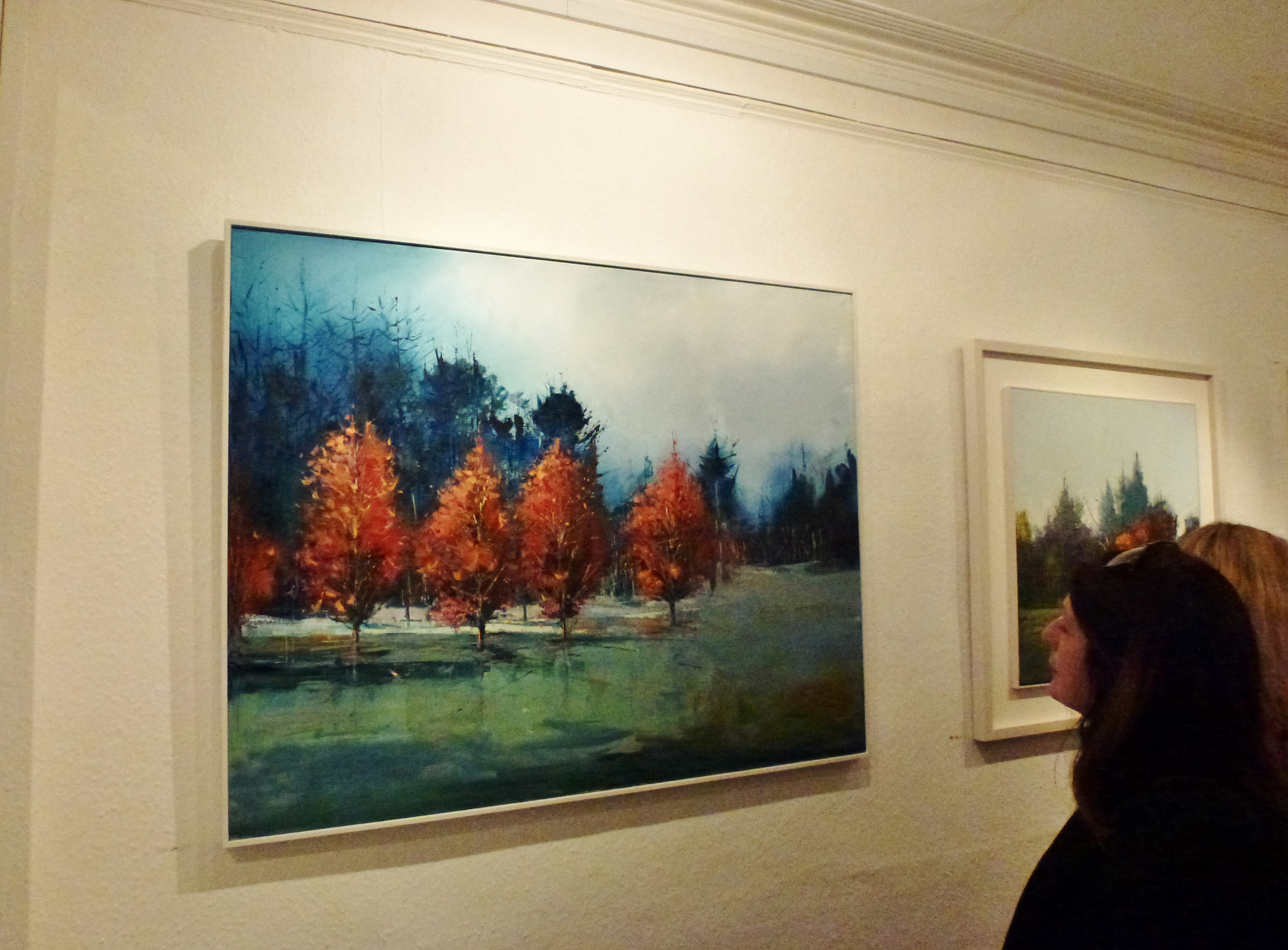 ‘I came upon a Place’ features 33 of Kate’s colourful works, with prices ranging from €350 for a small canvas up to €2600 for the large painting. Among the visitors on the opening night were her sister Karen Carleton, manager of the Mill Theatre in Dundrum and the artist and poet Roisin Duffy from Sreenty near Carrickmacross.