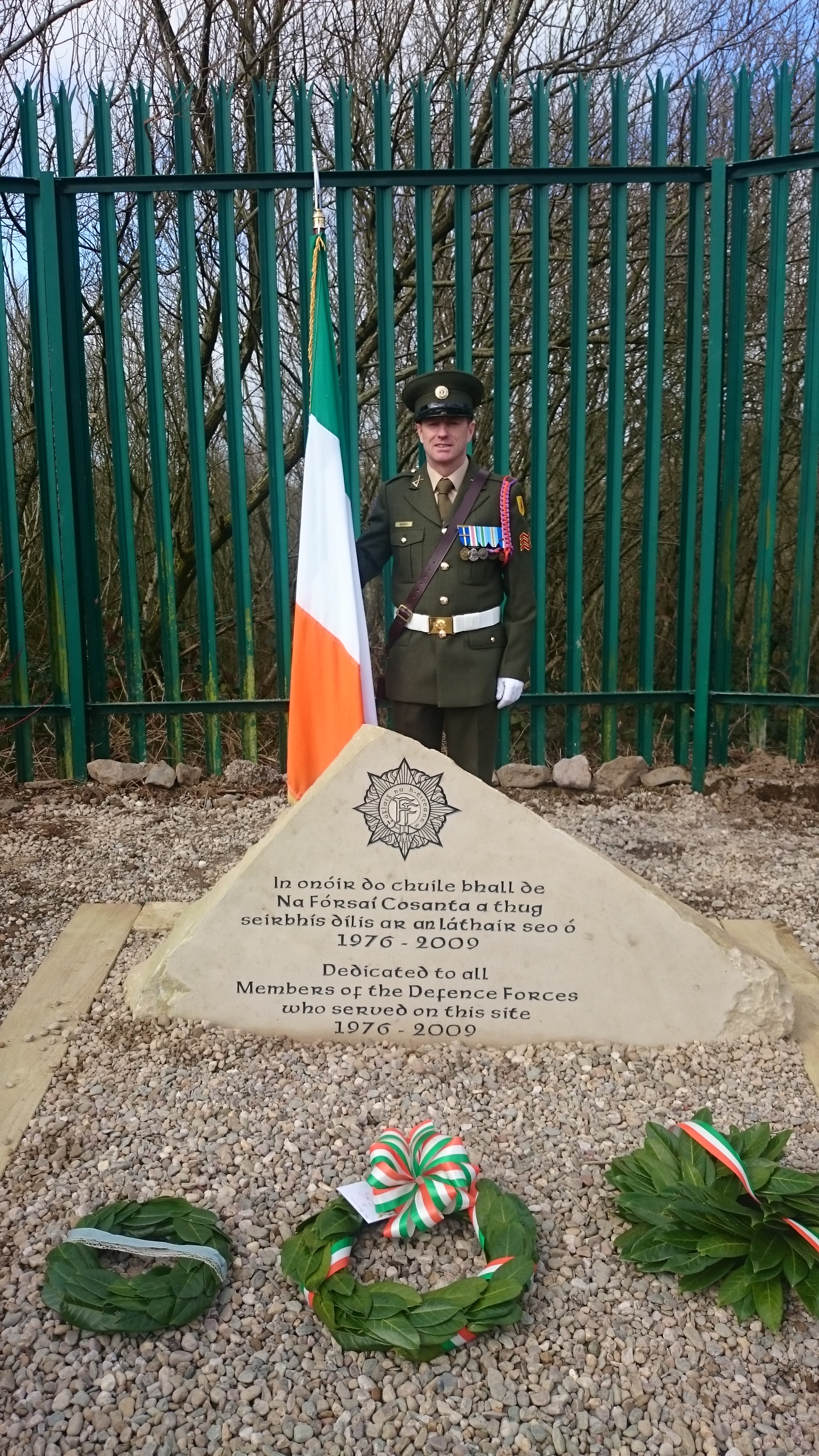 The memorial stone is dedicated to all members of the Defence Forces who served on the site 1976-2009.