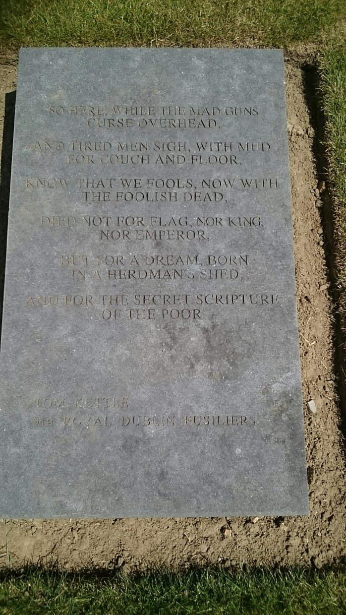 Lieutenant Tom Kettle was among the casualties recorded by the 16th Irish Division and he was commemorated in Dublin last week. His name and that of Lieutenant Kennedy would later be carved upon the Thiepval Monument to the Missing of the Somme along with 72,194 others whose remains were never identified.