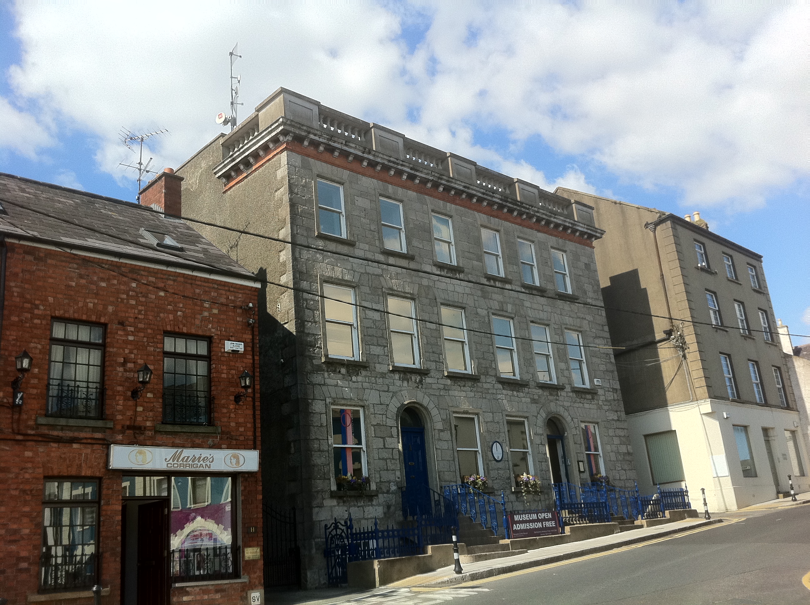 Mark Leslie with Eimear Quinn and Monaghan County Museum Curator Liam Bradley Pic. Michael Fisher