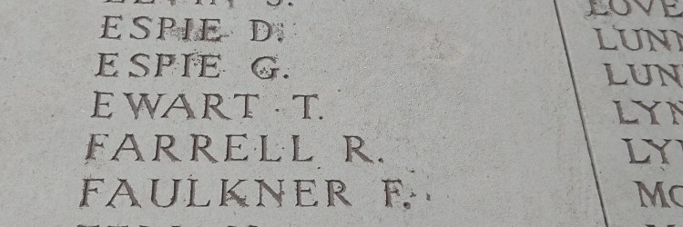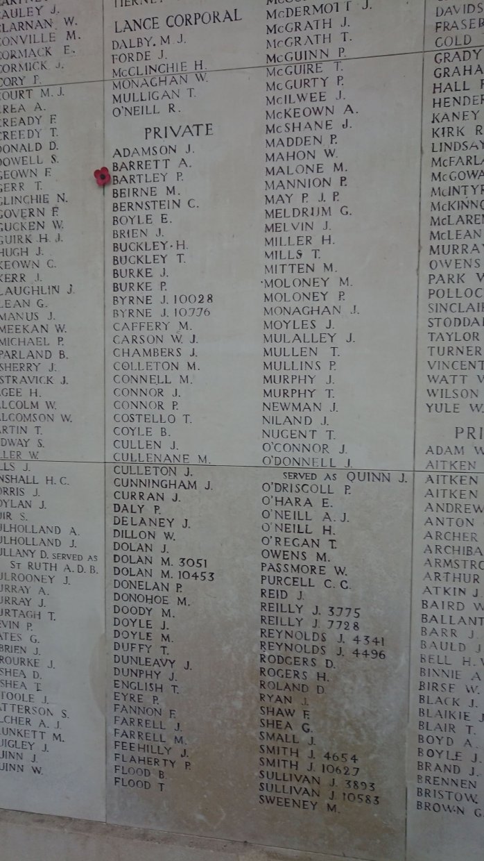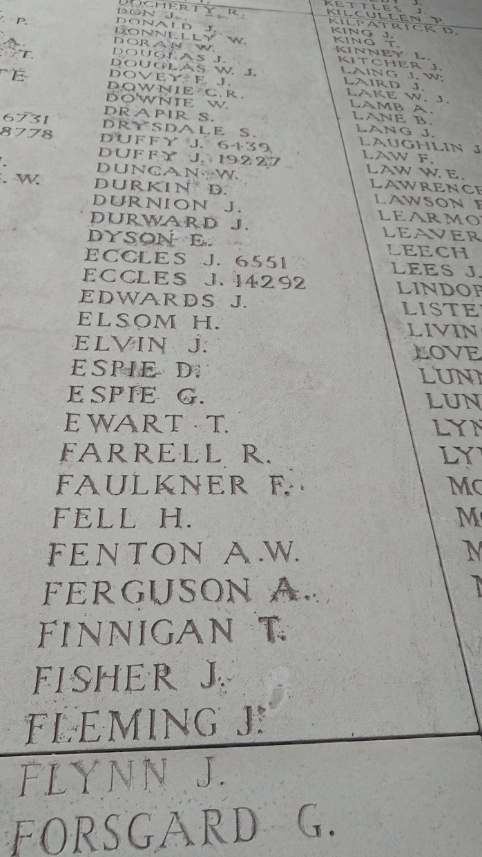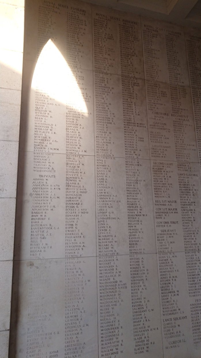 Names of soldiers who died in Flanders around the Ieper area whose remains were never identified. They are inscribed on the panels of the impressive Menin Gate CWGC memorial.
