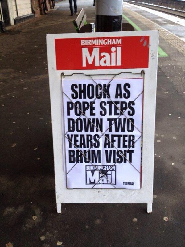 One comment on it was “Pope Brummidictus!!” whereas my own offering was on the lines of “Always find a local angle! Pope has had enough after visiting Lozells, Nechells, Perry Barr, Acock’s Green & Balti land“.