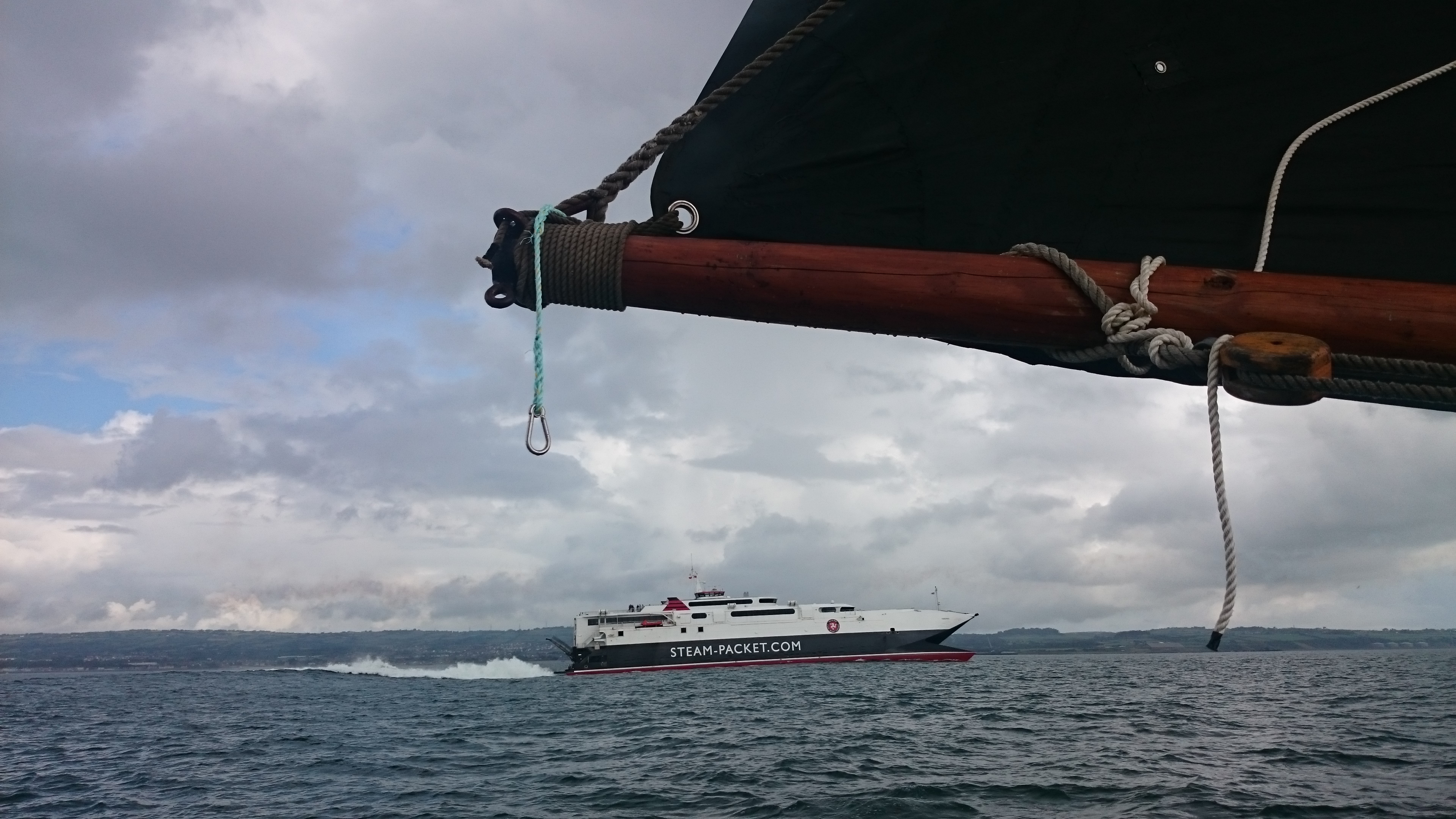 With the sails up, the boat reached a speed of ten knots and made good time past Islanmagee, where the Gobbins coastal path is being repaired, and near Larne.