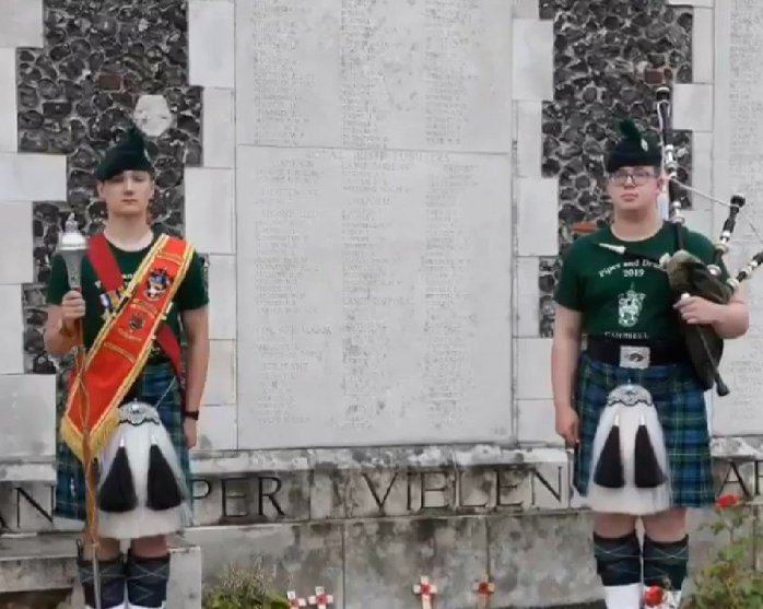 Cambell College CCF Pipe Band from Belfast laid a wreath at the Ulster Tower