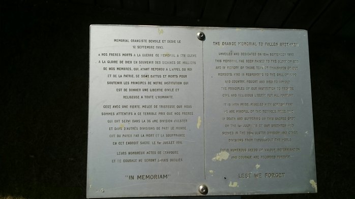 Explanatory plaque for the Orange Order memorial