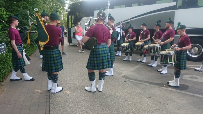 Campbell College CCF Pipe Band from Belfast tuning up at Thiepval