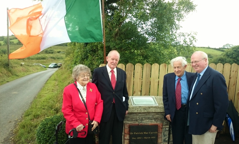The ceremony was performed by the former Tánaiste and Minister for Justice, Michael McDowell S.C., who is married to Niamh Brennan, a granddaughter of Dr Mac Carvill. The former leader of the Progressive Democrats said Dr Mac Carville whose background and history, elected three times to Dáil Éireann, contained lessons for us all. He told the assembled crowd he was proud that his three sons had the blood in their veins of such a patriot, scholar and gentleman. It was most important that his memory and great patriotism be kept and observed in his native county, especially in this decade of centenaries.