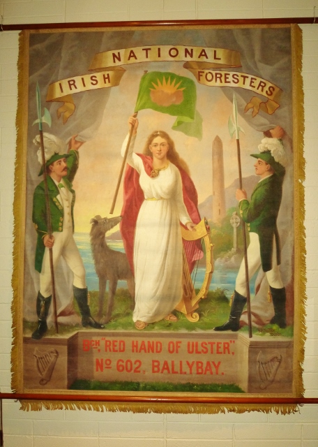 Quincey Dougan spoke about Monaghan unionists, in particular their contribution to the formation of the Ulster Volunteer Force. For a more detailed look at the subject, you can find his article on the subject here. One of the flags included in the exhibition comes from the 2nd Battalion of the UVF in Monaghan, which Quincey explained had its headquarters in Clones under the command of Lt Colonel Madden of Hilton Park outside the town. After the outbreak of World War I, Madden was replaced by a prominent solicitor Michael Knight, also Grandmaster of the County Orange.